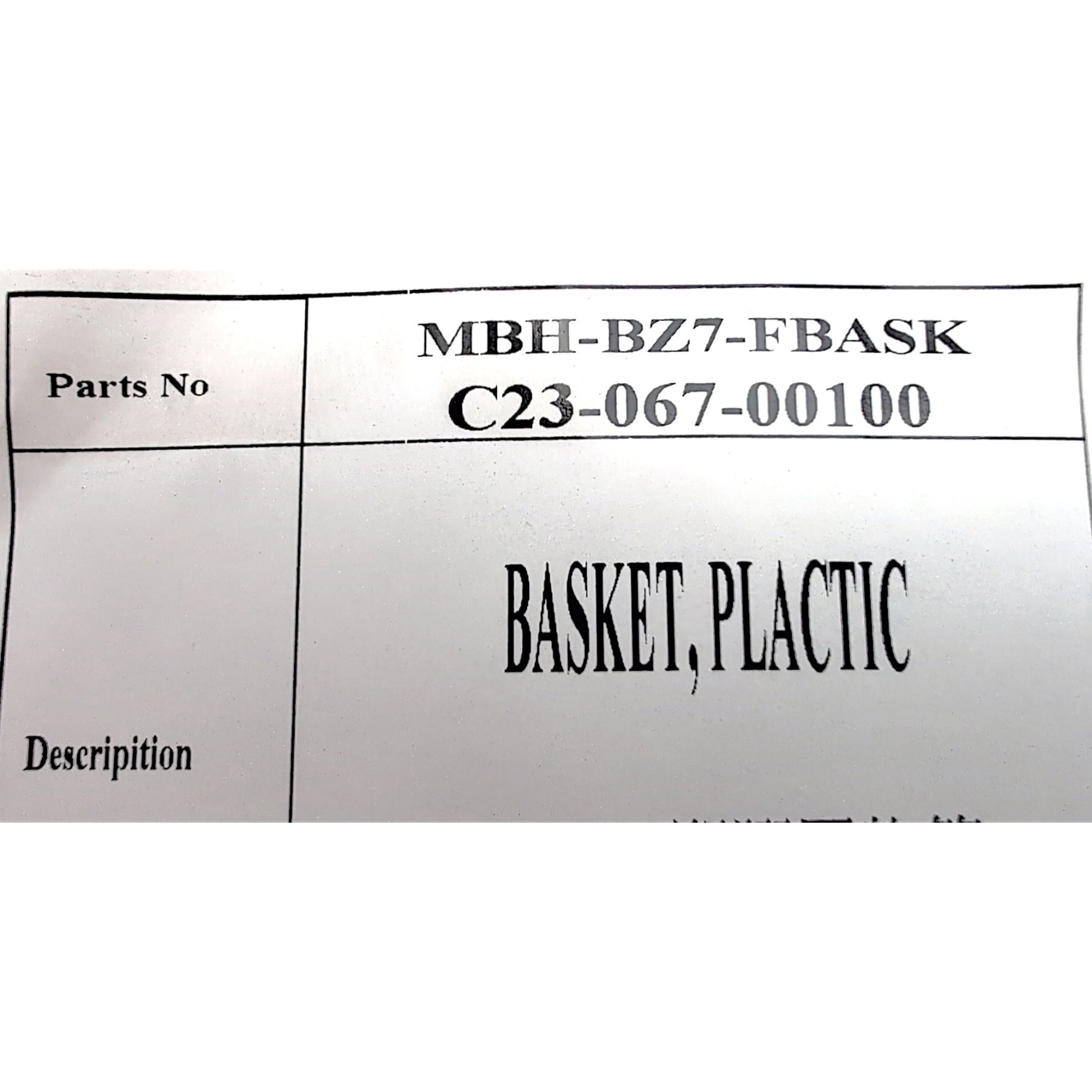This Basket is used for multiple brands & often sold under multiple part numbers for each brand (MBH-BZ7-FBASK, C23-067-00100, S35003-P, WT-C23-067-00100). It is the same basket by the same manufacturer.